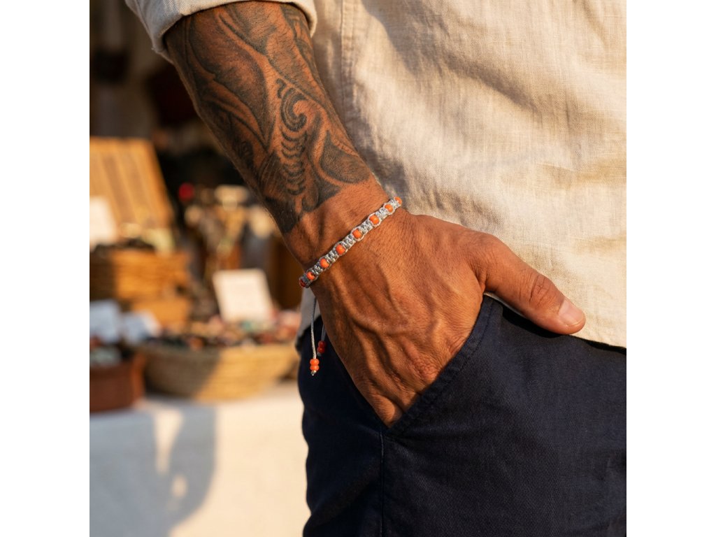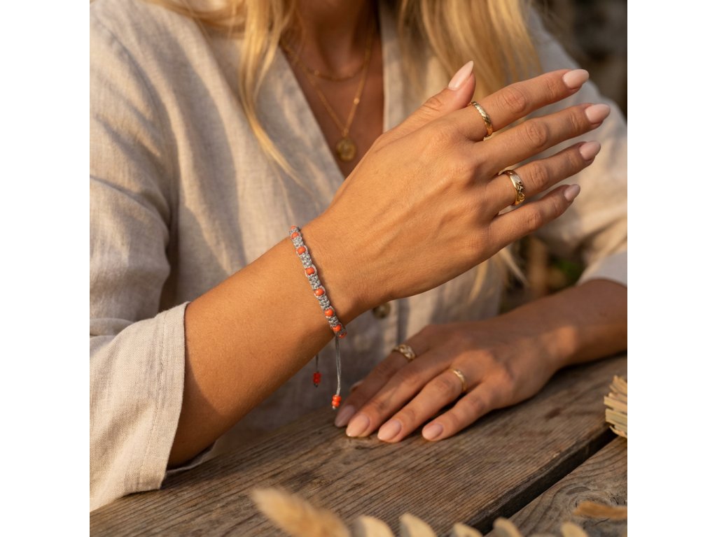 Objevte kouzlo jednoduchosti s naším minimalistickým jemným makramé náramkem. Tento elegantní kousek je ručně vyrobený z kvalitní makramé příze, což mu dodává jedinečný a osobitý vzhled. Dominantou náramku je oranžový korálek, který přináší do celkového designu nádech barevnosti a hravosti.