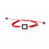 Tento luxusní ručně vyráběný náramek v sobě spojuje jemnost techniky macramé a eleganci postříbřeného přívěsku čtverce s krystaly. Náramek je vyroben prastarou technikou drhání – macramé a tvoří jej černá, červená nebo bílá bavlněná šňůrka a přívěsek čtverce o rozměru 13 mm osázen krystaly - povrchová úprava stříbro.