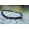 Náramek je vyroben prastarou technikou drhání – macramé. Tato technika pochází z arabských zemí a do Evropy se dostala asi ve 13. století. Náramek je vytvořen z bavlněné voskované šňůrky a plastových kostiček různých barev – stříbrná, zlatá, černá nebo bílá. Velikost kostiček – 6 mm. Použité materiály jsou skvělou alternativou, pokud máte alergii na bižuterní kov.