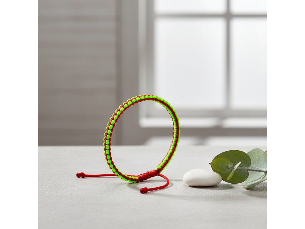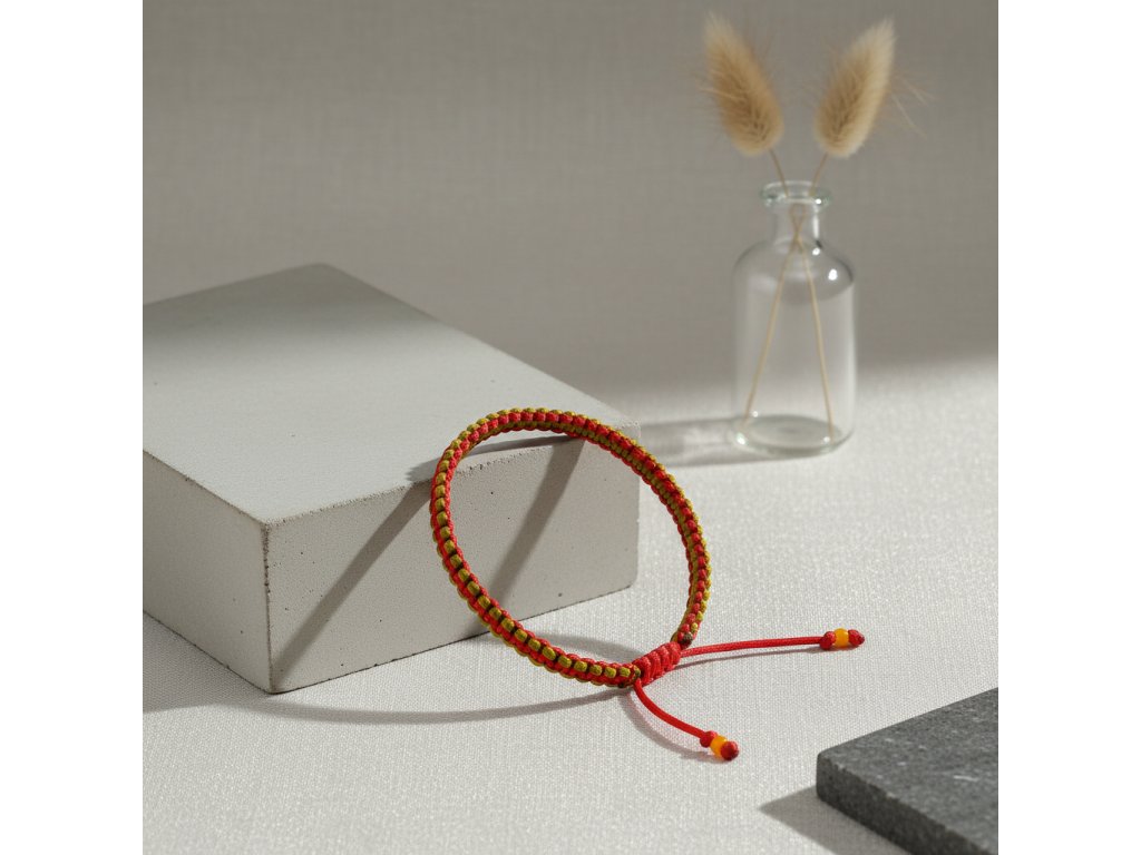 Náramek je vyroben z kvalitního nylonového provázku saténové barvy, který je příjemný na dotek a zaručuje pohodlné nošení po celý den.