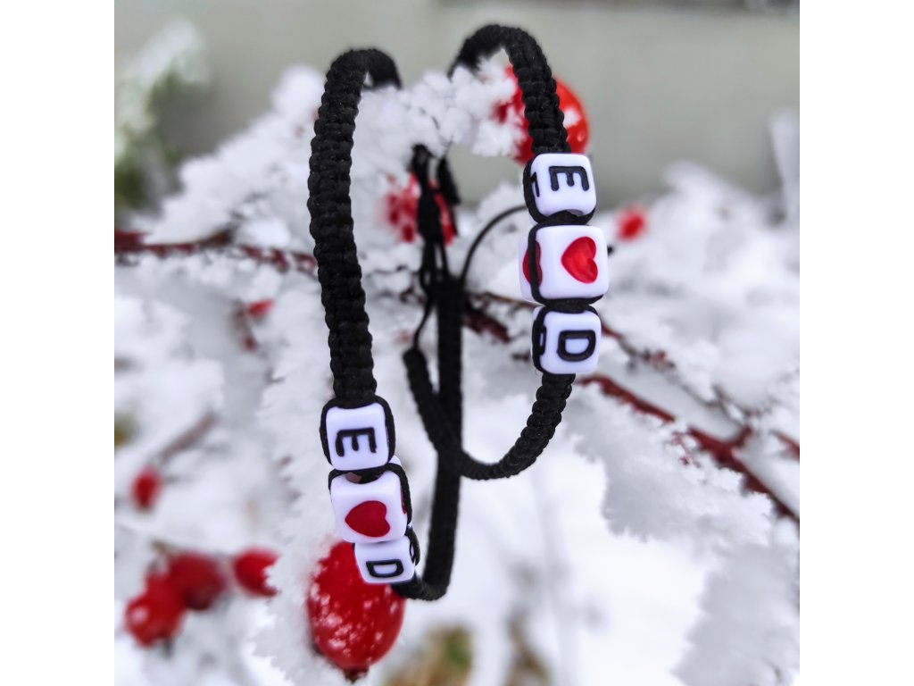 Objevte jedinečný párový náramek, který spojuje tradiční techniku makramé s moderním designem. Ručně pletený se srdíčkem a vlastním iniciálem je symbolem lásky a spojení. Dámský náramek je jemnější, vyrobený z příze o průměru 0,8 mm, zatímco pánský je robustnější, z příze 1,2 mm. Velikost kostiček – 6 mm.