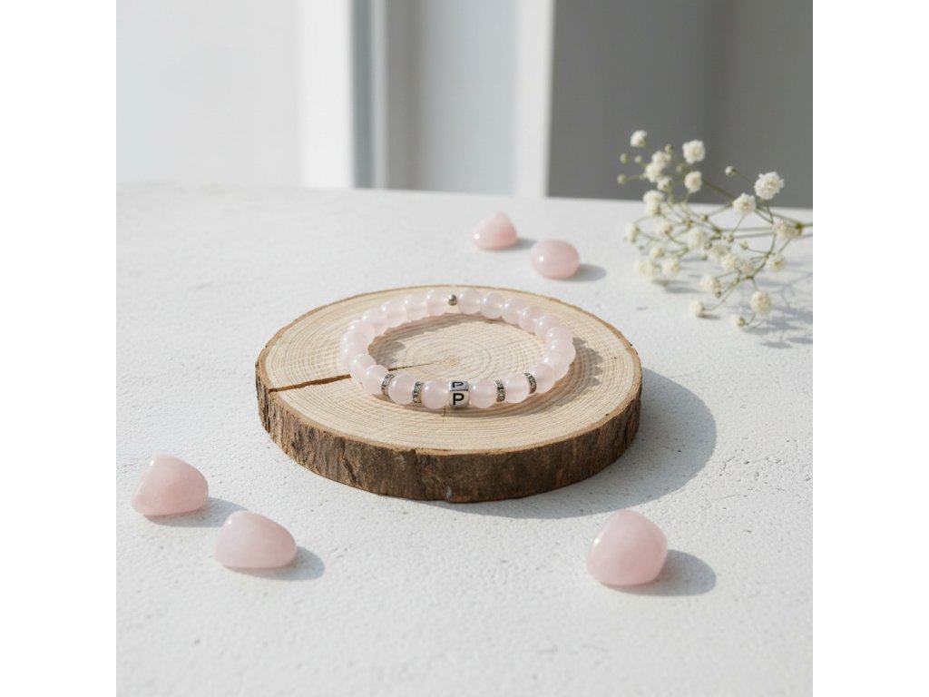 Objevte náš elegantní korálkový náramek, který spojuje krásu minerálního kamene Růženín s osobním dotekem. Tento náramek je vyroben z kvalitních korálků o velikosti 8 mm, které jsou známy svými blahodárnými účinky a jemným vzhledem.