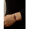 Provázkový náramek s vloženým strassovým čtvercem, do kterého jsou zasazeny červené kamínky. Každý náramek je ruční prací, pečlivě vytvořený z kvalitní příze. Červené kamínky dodávají náramku jednoduchý, večerní šmrnc i denní svěžest. Ideální doplněk k sukni i k džínám, skvěle se hodí i jako dárek.