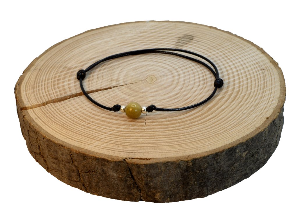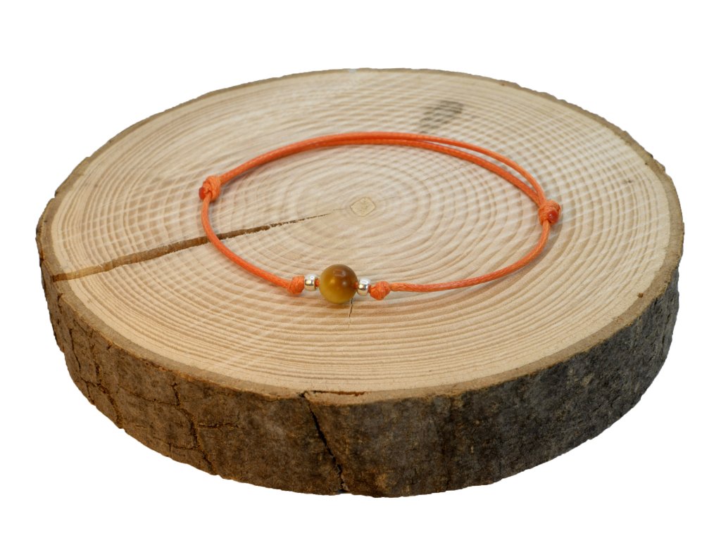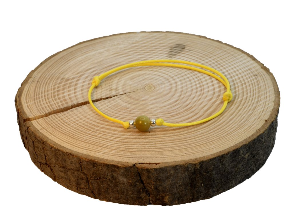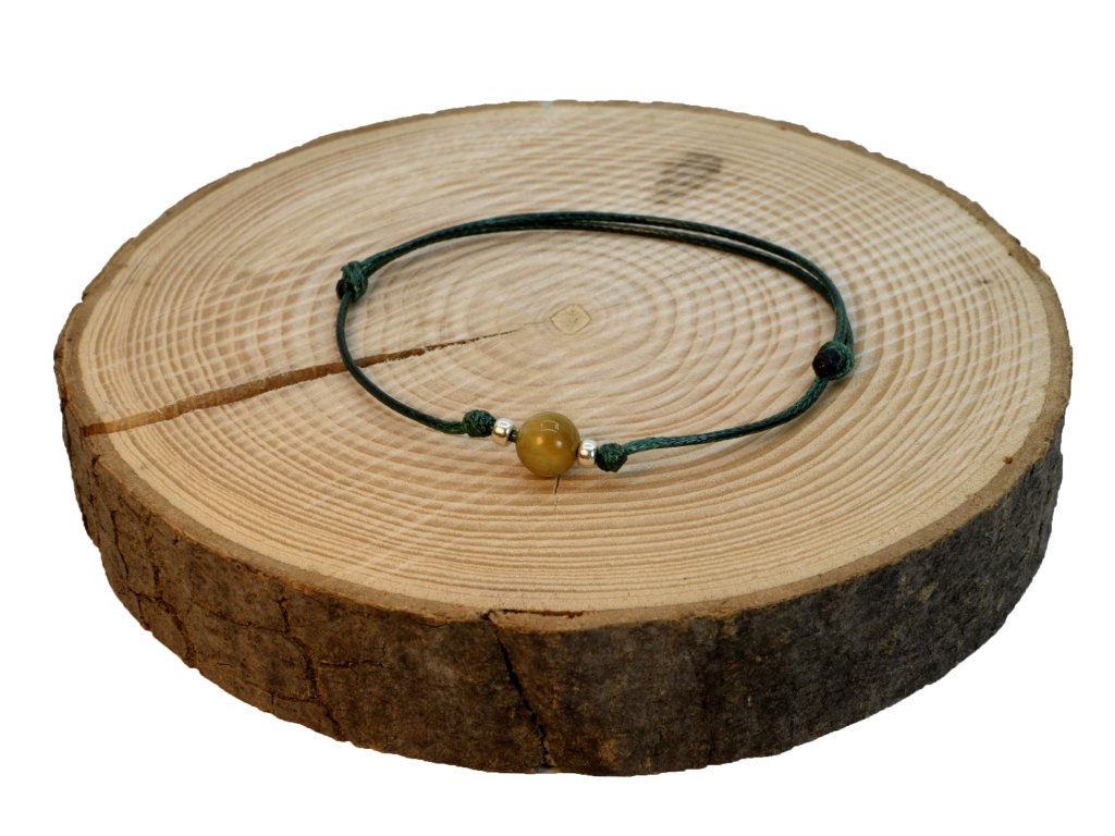 Elegantní provázkový náramek z přírodního kamene zlaté tygří oko, ve svěžím ladení. Korálky o velikosti 6 mm navlečené na pevné nylonové přízi zajišťují spolehlivý a pohodlný design. Korálky v lesklém zlatém odstínu s jemným mléčným žíháním dodávají náramku jemný, přírodní vzhled. Po stranách jsou umístěny stříbrné korálky, které podtrhují jeho minimalistický, ale stylový design.